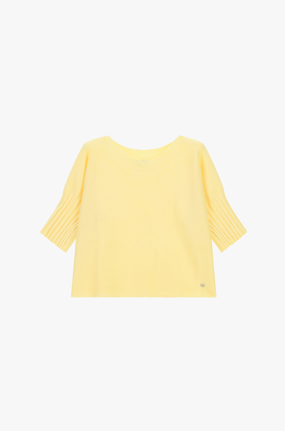 Please BOATNECK genser i fargen Banana er en tidløs og feminin strikket topp med et elegant uttrykk. Den flatterende båthalsen gir et sofistikert preg, samtidig som den åpner opp hals- og skulderpartiet for en lett og moderne silhuett.