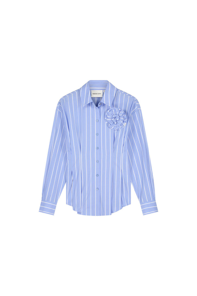 Skjorte med avtagbar blomst. Tips: bruk f.eks også blomsten må en hvit skjorte for å freshe den opp!