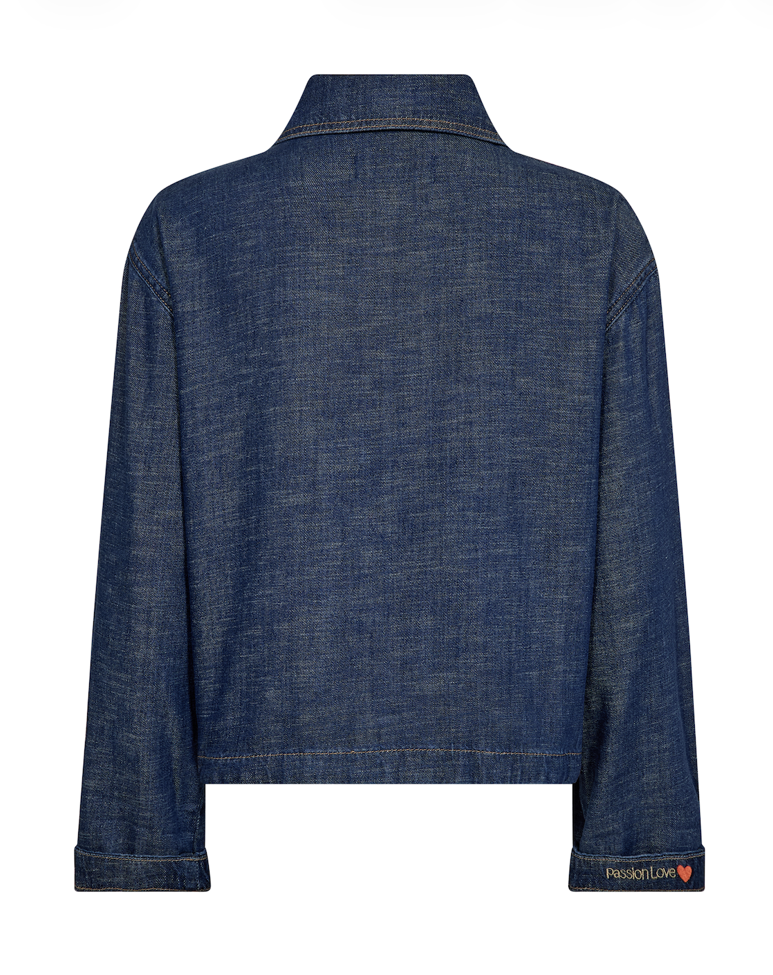 Den mørkeblå denimfargen gjør jakken enkel å kombinere med både jeans, kjoler og skjørt, og passer like godt til hverdags som til mer pyntede antrekk. En allsidig garderobefavoritt som fungerer perfekt som overgangsjakke gjennom flere sesonger.