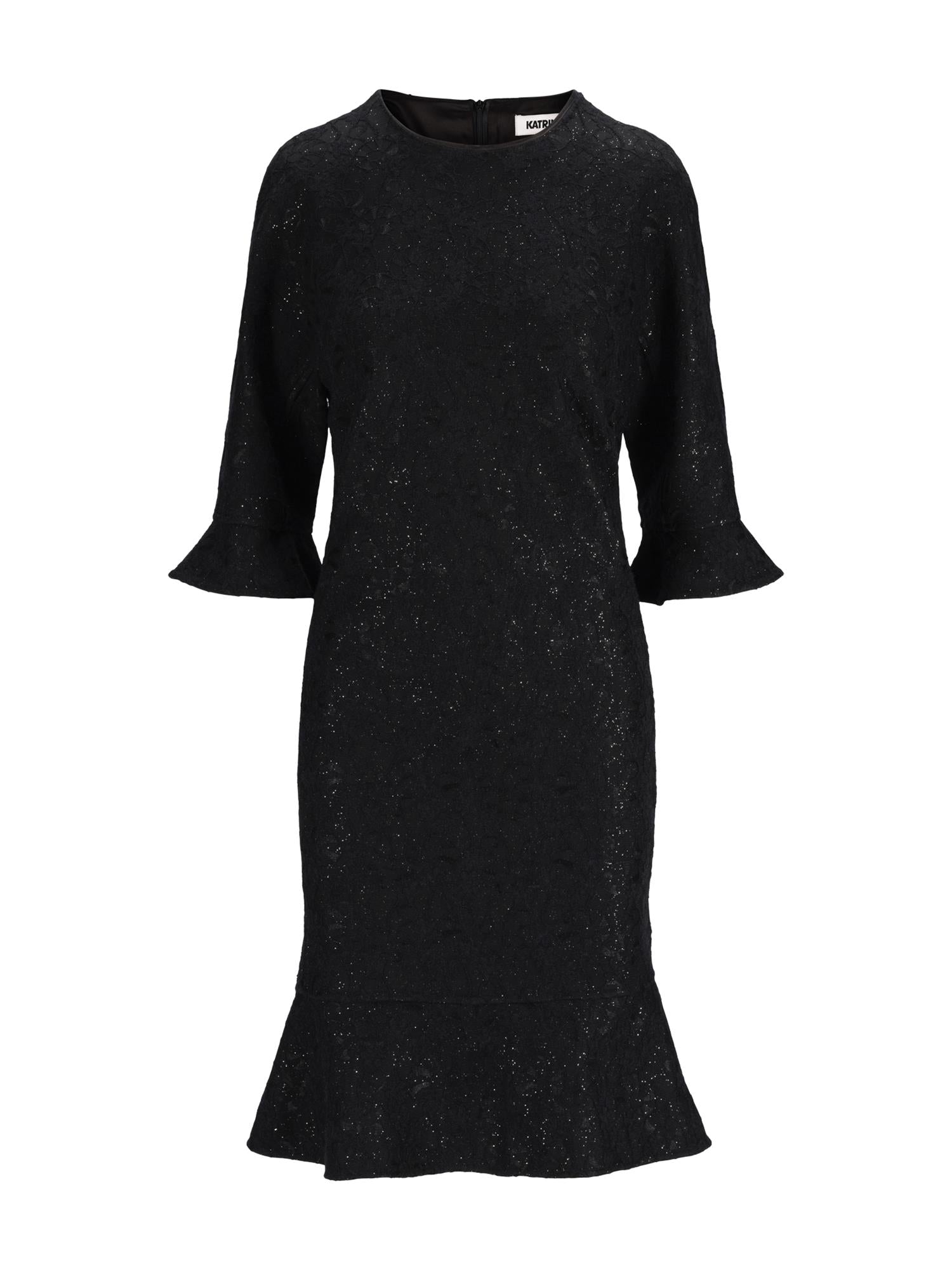 Svart kjole fra Katrin Uri med brodert print og glitter.