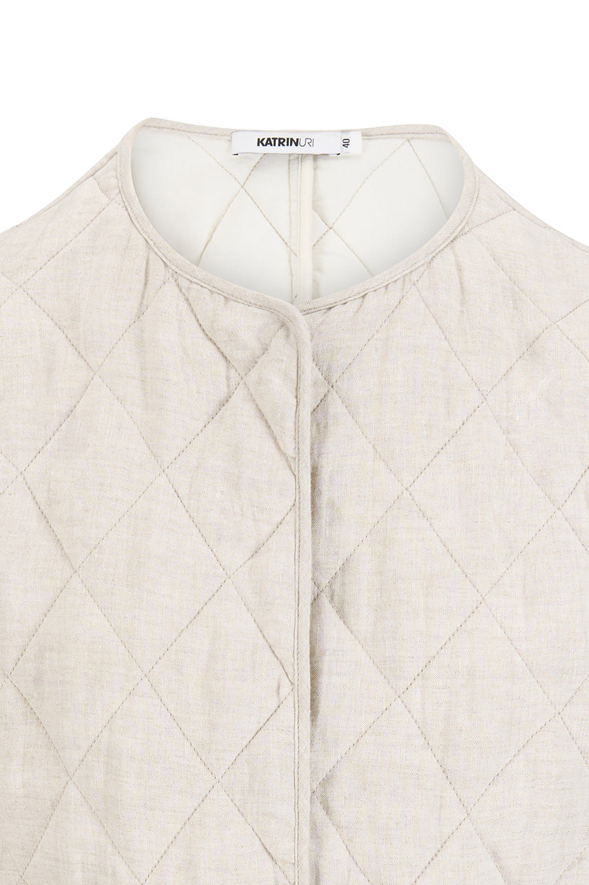 Katrin Uri Kairo Jacket er en elegant og tidløs jakke i et klassisk quiltet design som gir et sofistikert og eksklusivt uttrykk. Den lyse fargen Natural Linen gjør jakken enkel å kombinere med både lyse og mørke plagg, og passer perfekt til både hverdagsbruk og mer pyntede anledninger.