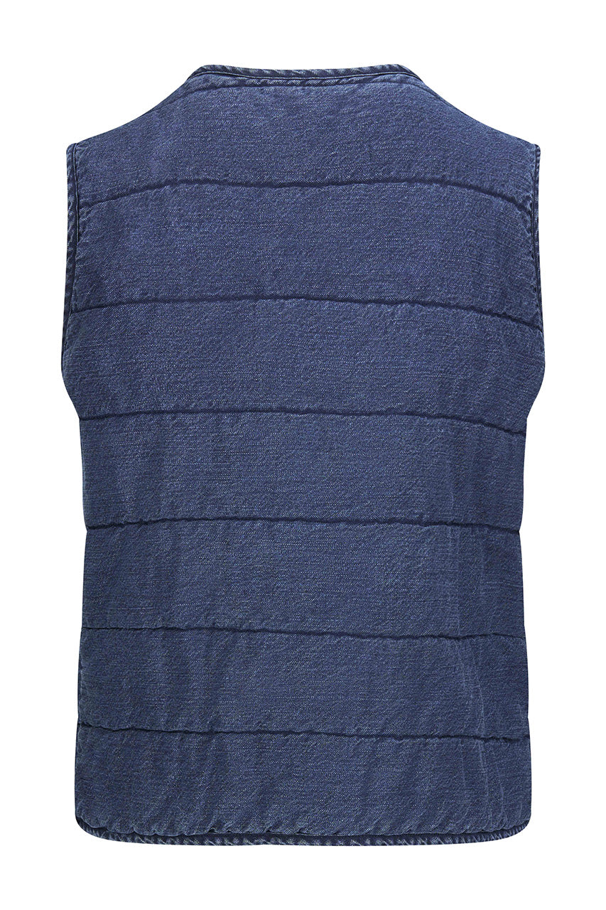 Den mørkeblå fargen tilfører et tidløst og elegant uttrykk som gjør vesten enkel å style til både hverdags og mer pyntede anledninger. Bruk den alene eller som et lag-på-lag-plagg for et gjennomført og trendy uttrykk.