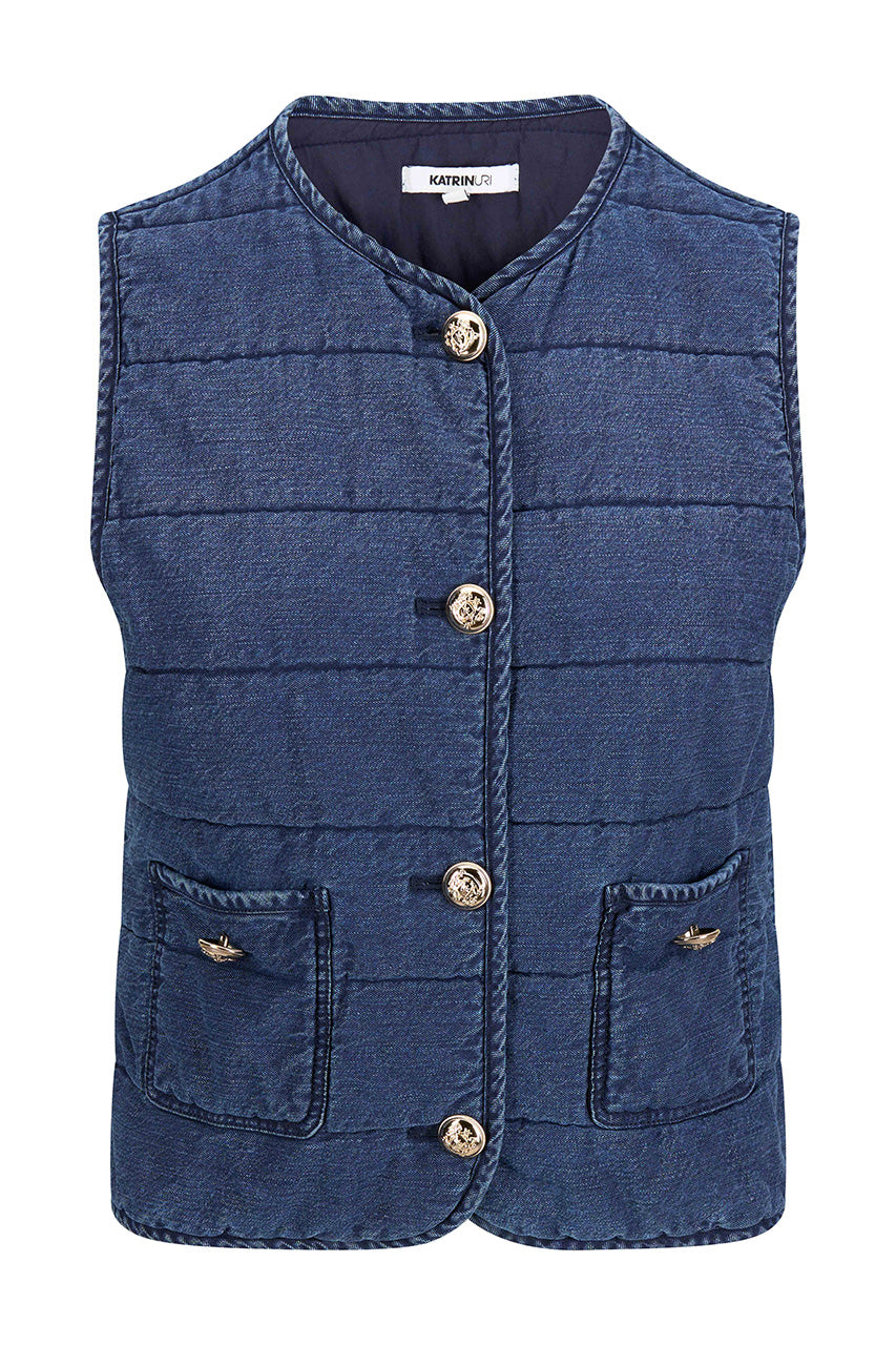 Katrin Uri Sienna Quilted Vest er en stilren og anvendelig vest som gir antrekket et moderne og sofistikert uttrykk. Den quiltede strukturen kombinert med dekorative gullknapper gir et eksklusivt preg, samtidig som vesten fungerer perfekt som et lett lag over skjorter, bluser eller strikk. Kan også brukes for segselv