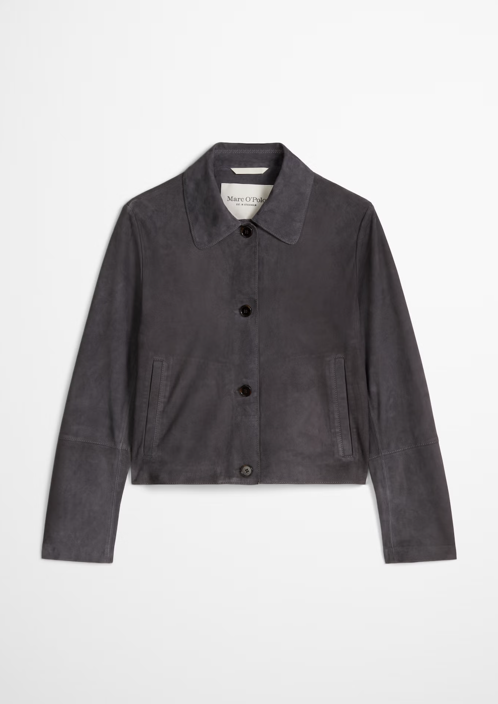 Designet kombinerer rene linjer med en klassisk skjortekrage og knappelukking i front, noe som gir et minimalistisk, men samtidig gjennomført uttrykk. Den korte lengden gjør jakken perfekt som et lett ytterplagg over skjorter, strikk eller T-skjorter – ideell gjennom sesongskiftene.