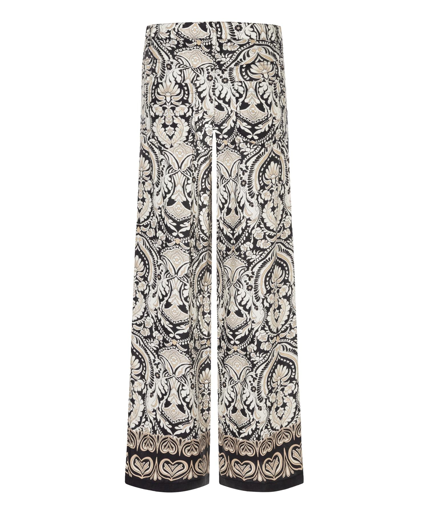 Cambio Adrienne bukser er et elegant statement-plagg som kombinerer komfort med et eksklusivt, kunstnerisk uttrykk. Det detaljerte paisley-inspirerte mønsteret i fargemiksen Multi gir buksen et sofistikert og moteriktig preg, perfekt for både hverdagslige og mer oppdressede anledninger.