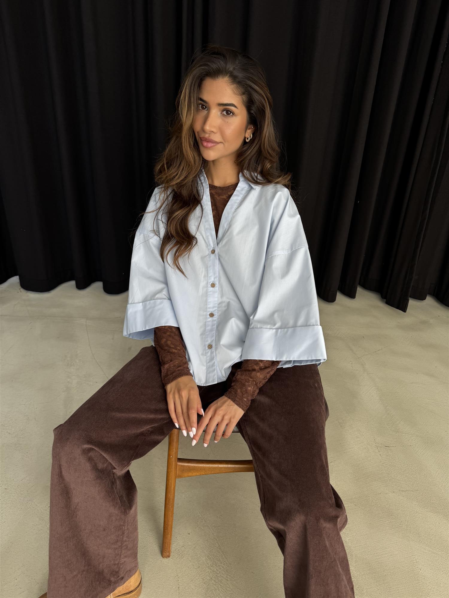 Den minimalistiske designen med krage og knappelukking gir et sofistikert preg, mens de korte ermene med oppbrett tilfører et avslappet og moderne uttrykk. Blusen er like fin til jeans for en uanstrengt look som til dressbukser eller skjørt for et mer gjennomført antrekk.