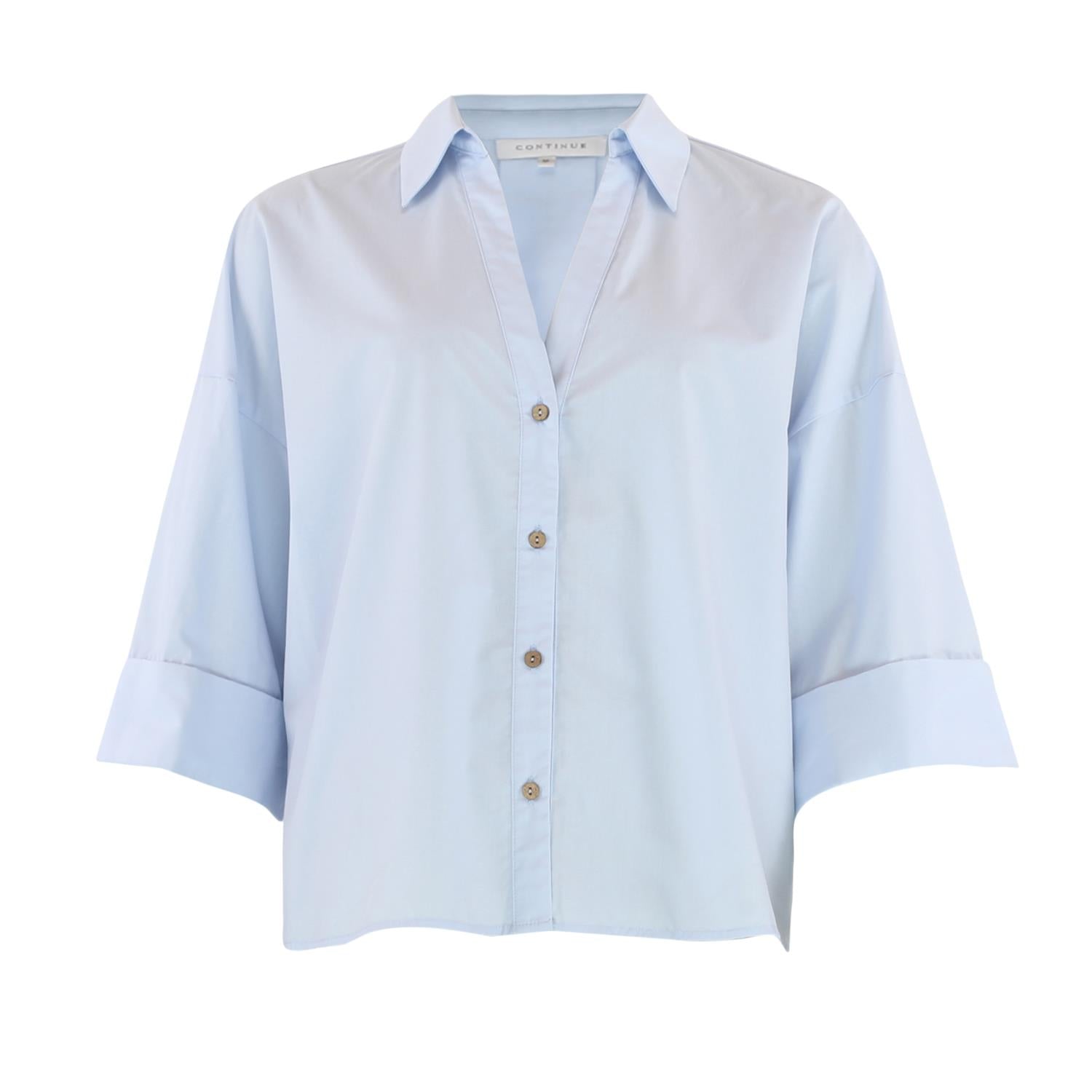 Continue Augusta er en stilren og moderne skjortebluse med et rent uttrykk som passer perfekt inn i en tidløs garderobe. I fargen Light Blue får du en frisk og klassisk nyanse som enkelt kan styles til både hverdags og mer oppgraderte antrekk.