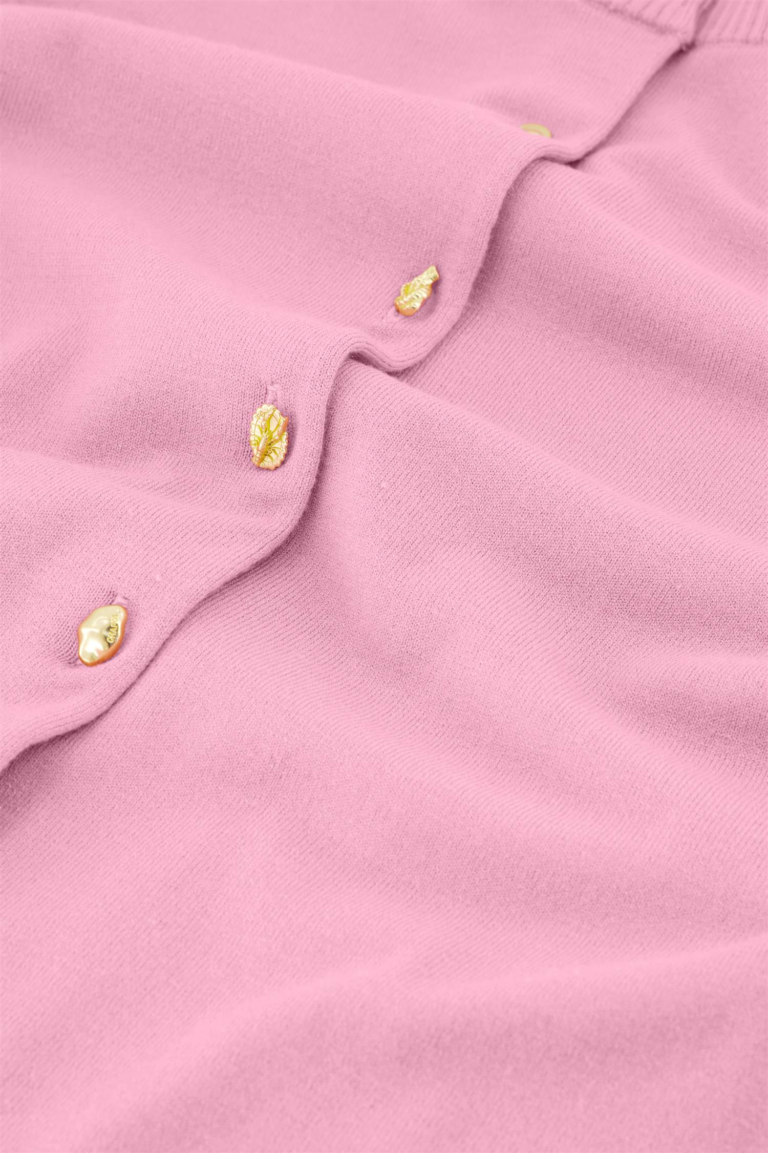 Fabienne Chapot Molly Short Sleeves Cardigan er en feminin og elegant cardigan som tilfører garderoben et friskt og sofistikert uttrykk. Den kommer i en delikat rosa nyanse som gir antrekket et mykt og moderne preg – perfekt til både hverdagsbruk og mer pyntede anledninger.