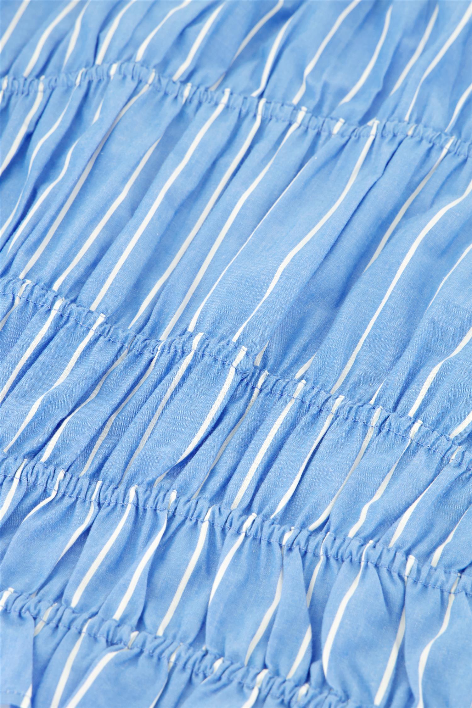 Den smockede strukturen skaper en flatterende silhuett og gir en spennende tekstur, mens de dekorative knytebåndene i sidene tilfører en leken og unik detalj. Perfekt til både jeans, skjørt og linbukser – like fin til hverdags som til mer pyntede anledninger.
