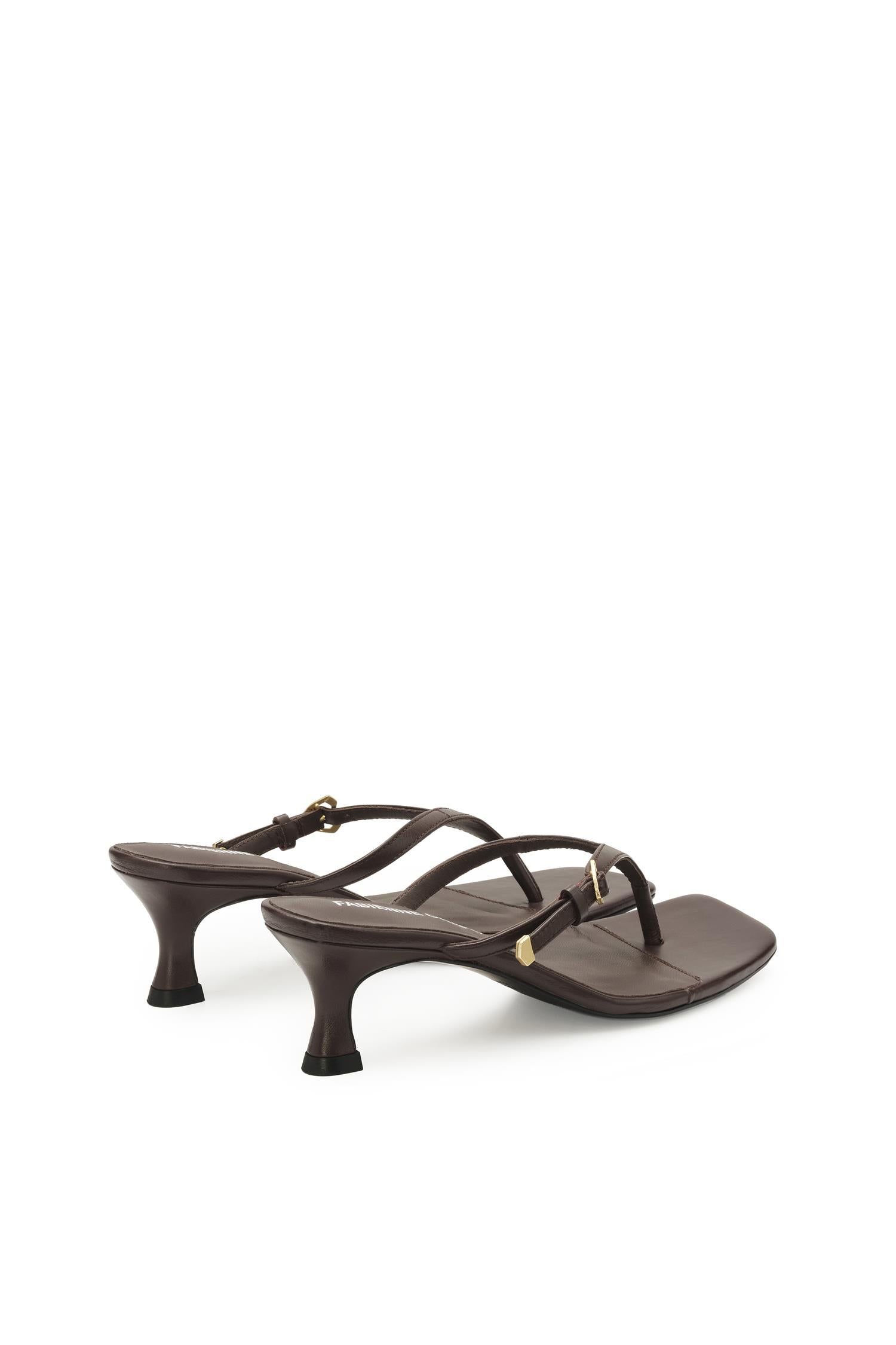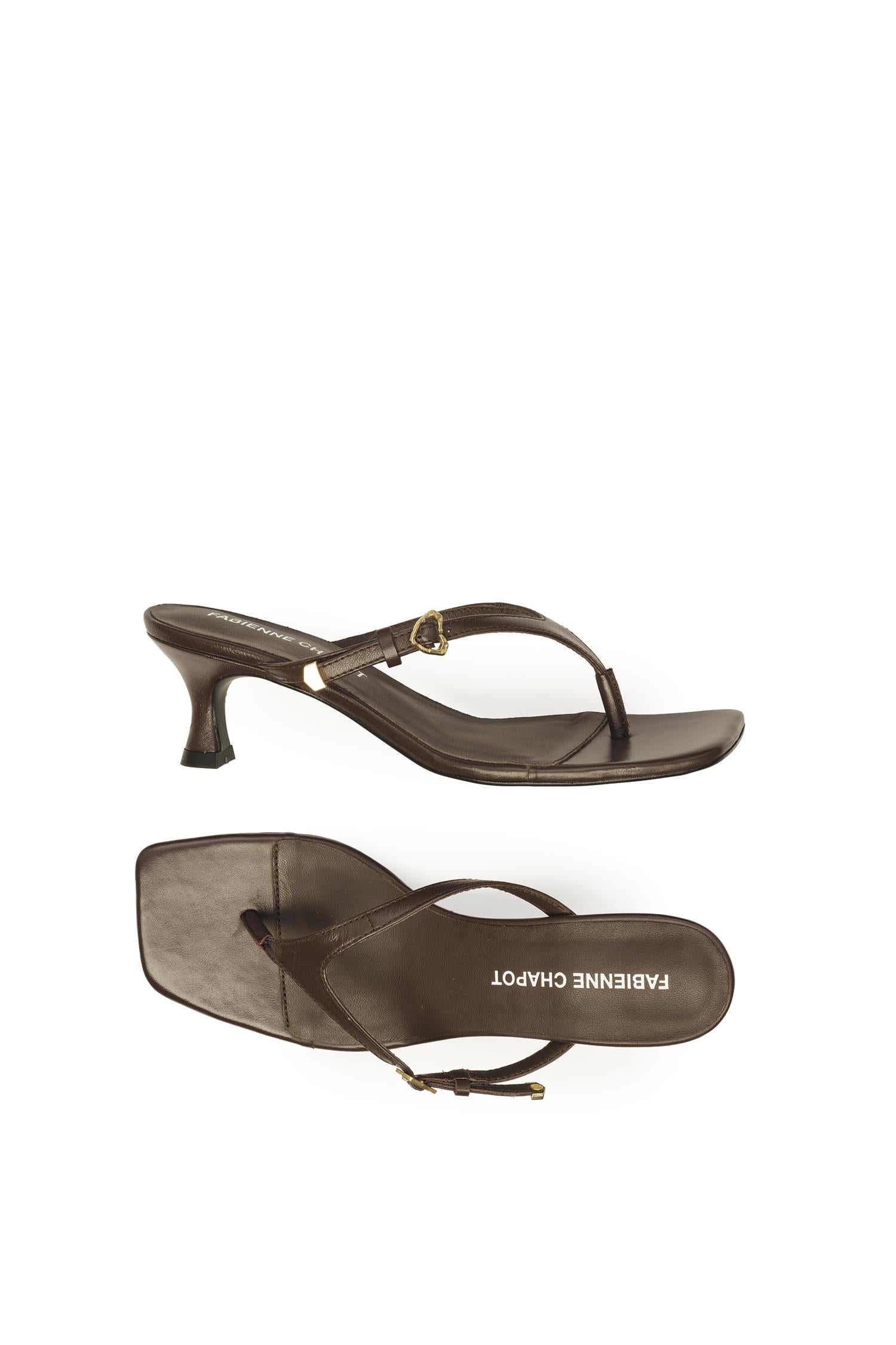 Fabienne Chapot Fifi Flipflop Heels er en feminin og elegant sandal som kombinerer minimalistisk design med et sofistikert uttrykk. I fargen Brownie får du en varm, dyp brunnyanse som gjør skoene tidløse og enkle å style til både hverdagsantrekk og mer pyntede sommerlooks.
