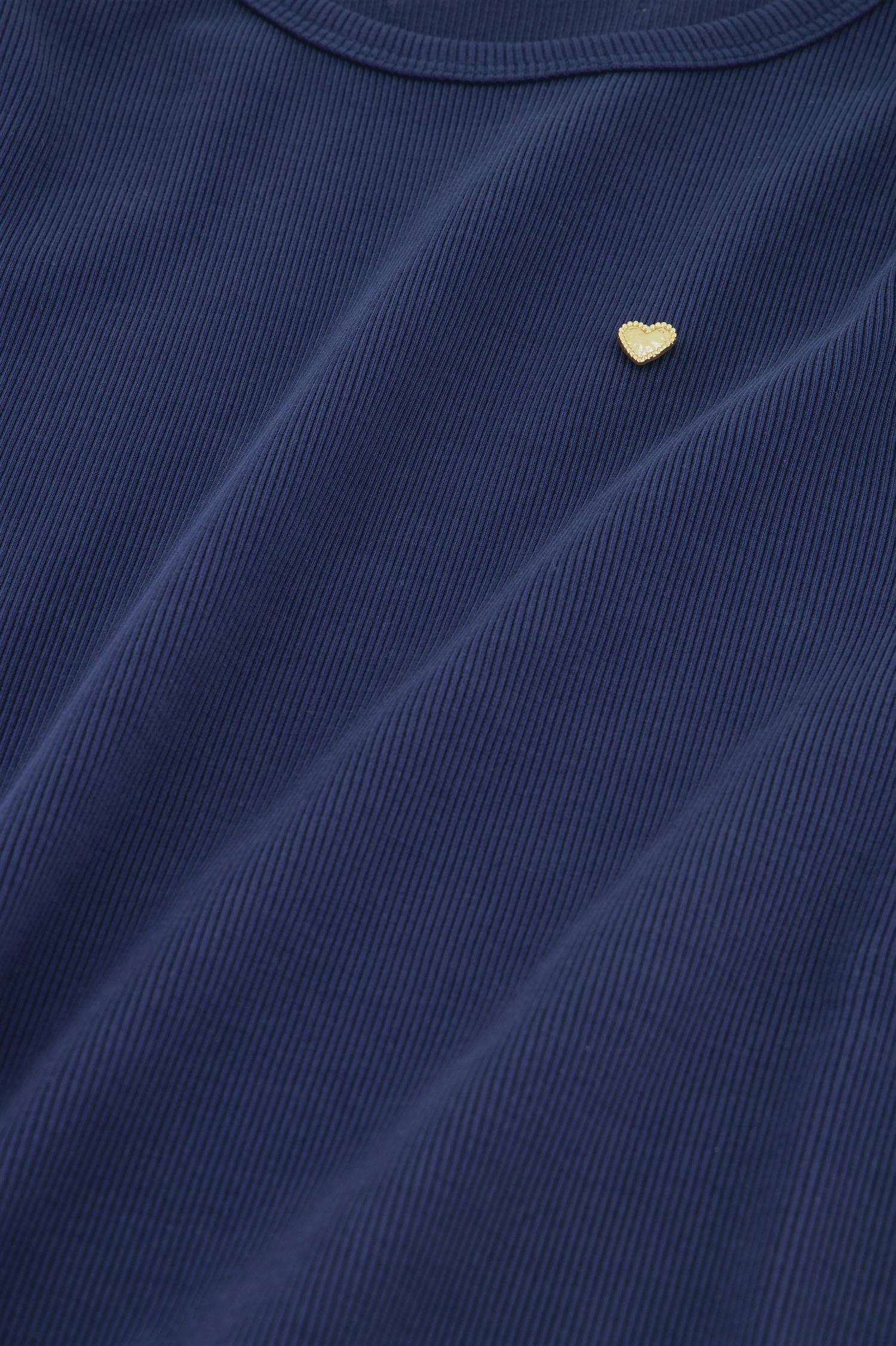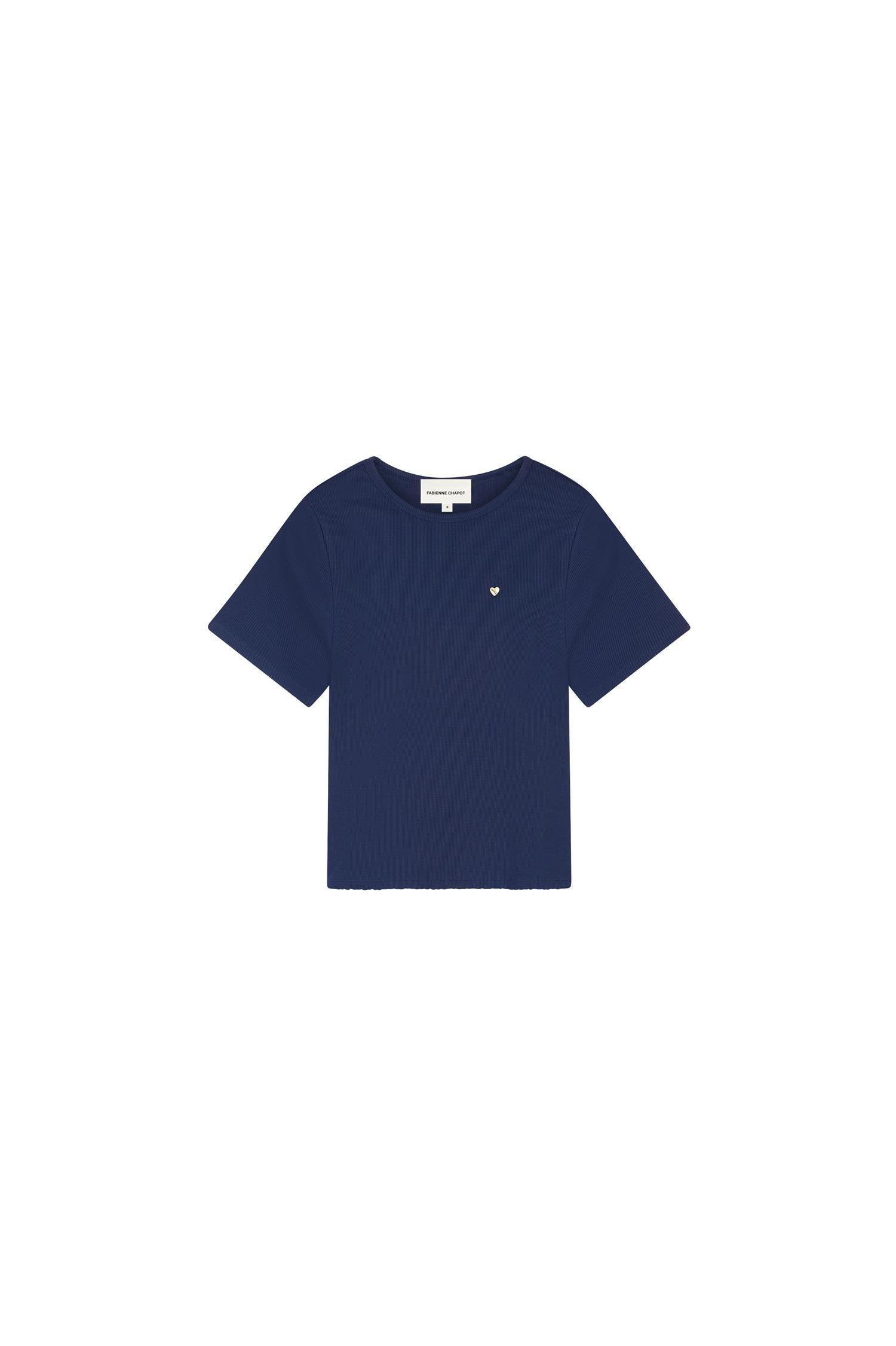 Den klassiske silhuetten med rund hals og korte ermer gir et rent og moderne uttrykk, mens den lille broderte hjertedetaljen på brystet tilfører et subtilt og eksklusivt Fabienne Chapot-touch. Den ribbestrikkede strukturen gir ekstra tekstur og en flatterende finish som løfter designet fra enkel til gjennomført.