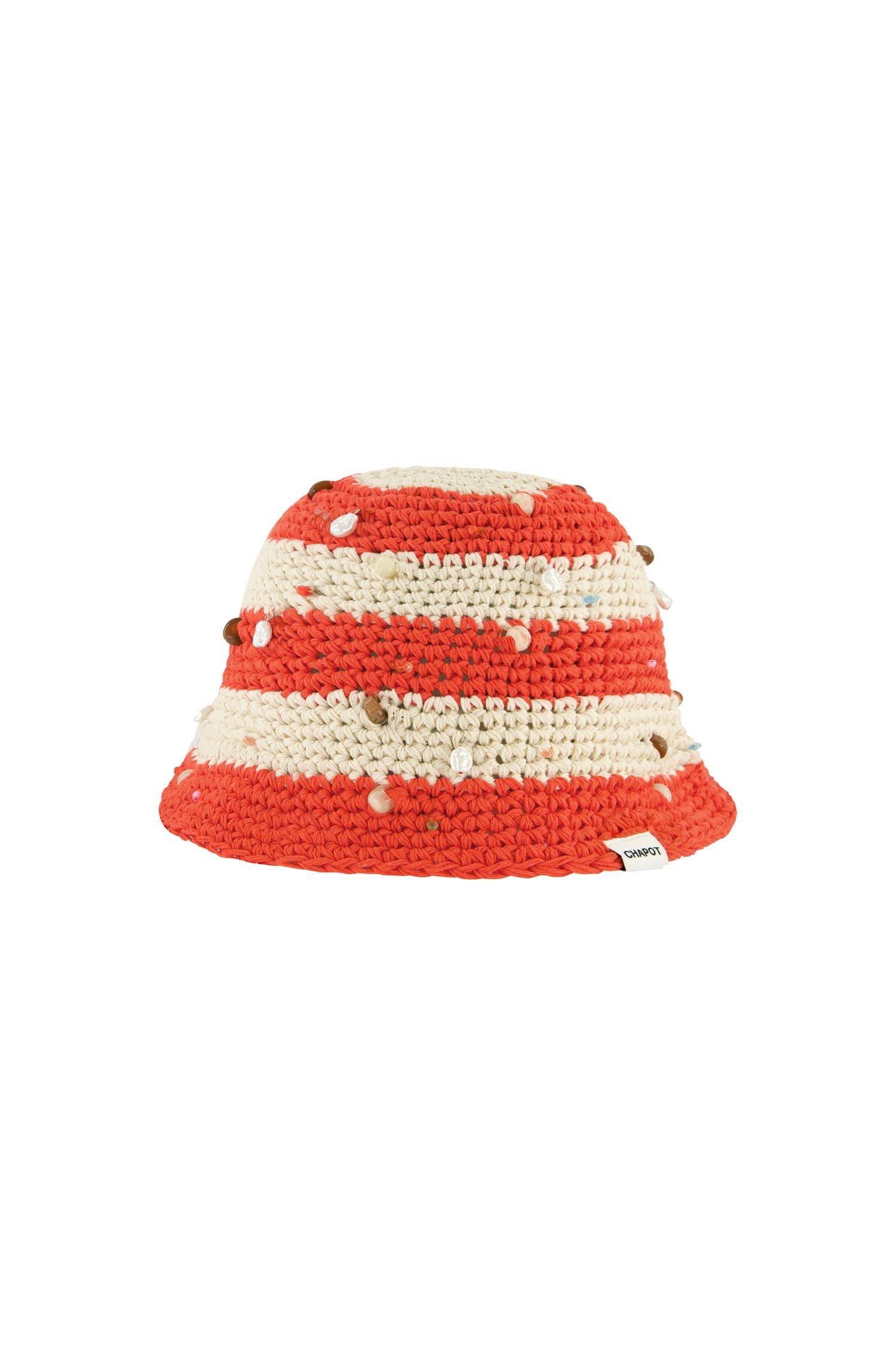 De kontrastfargede stripene i Cosy White og Tangerine skaper en frisk og moderne stil, mens de små pyntedetaljene gir hatten et ekstra særpreg. Perfekt til varme dager, ferier eller som et statement-tilbehør til en avslappet garderobe.