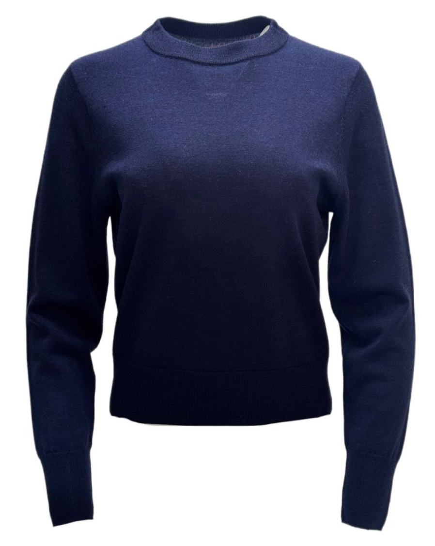 Toppen har en ren silhuett med rund hals og lange ermer som gir et stilrent og feminint uttrykk. De ribbestrikkede avslutningene ved mansjetter og nederkant skaper en raffinert finish og gir plagget et gjennomført preg. Den enkle fasongen gjør den til et allsidig plagg som passer perfekt til både hverdagsbruk og mer oppkledde anledninger.